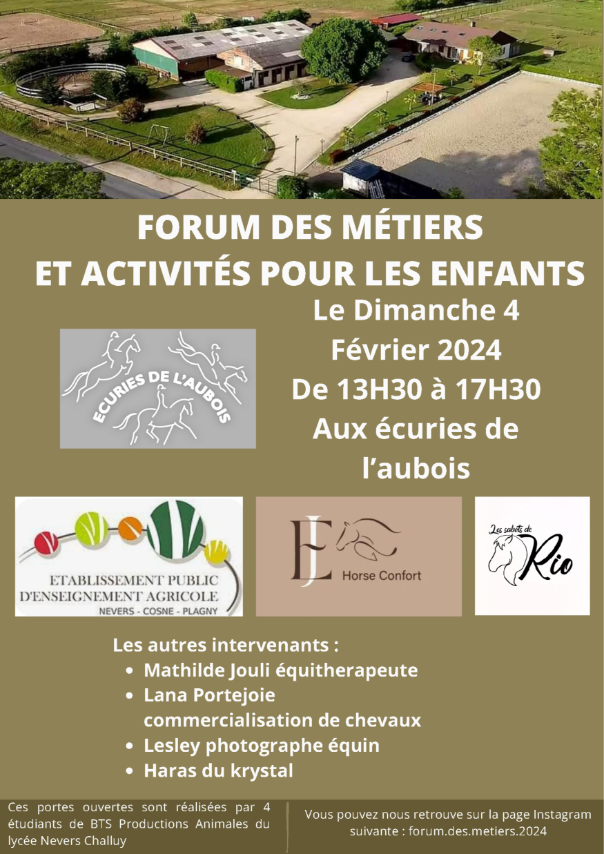 Le Forums des Métiers agricoles du lycée Nevers Challuy, c'est Dimanche 3 Février de 13h30 à 17h30 à La Guerche s/ l'Aubois.
