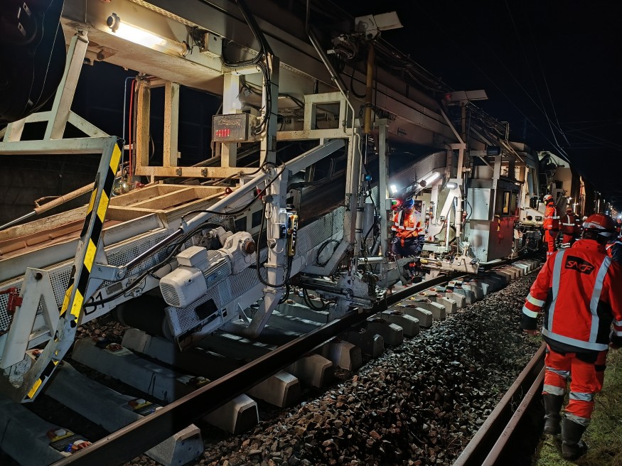 106 millions d'euros, 5 mois de travaux, 56 km de voies à rénover, la SNCF ne manque pas d'ambition pour le deuxième projet le plus couteux cette année. Chaque nuit de la semaine, 450 agents sont sollicités sur ces travaux, mais le personnage principal de l'opération n'est pas l'un d'entre eux. Mesurant 750 mètres de long, le train-usine va permettre de renouveler une ligne importante du département. En France, seulement 3 engins de ce type existent, un dispositif qui peut remettre à neuf 1 km de voie par jour contre 100 mètres pour des machines classiques. Au total, ce sont 110 000 tonnes de ballast et 95 000 traverses qui seront déposées entre Nevers et Cosne-sur-Loire. Maxime Chatard, directeur territorial SNCF réseau de la région Bourgogne-Franche-Comté, est satisfait du rendu "On en est très fiers. 450 personnes sont mobilisées chaque nuit. Et chaque matin, les trains circulent à nouveau avec une vitesse rendue à 80 km/h au lieu d'ailleurs de 60 d'habitude." Cette opération était nécessaire pour une ligne datant des années 70. "SNCF Réseau intervient pour favoriser la vitalité des territoires, donc, c'est très important de régénérer et de moderniser le réseau parce que le ferroviaire, ça commence par le réseau. Si on veut de la sécurité des circulations ferroviaires, si on veut des trains à l'heure, de la robustesse, il faut régénérer ce réseau" explique Maxime Chatard.